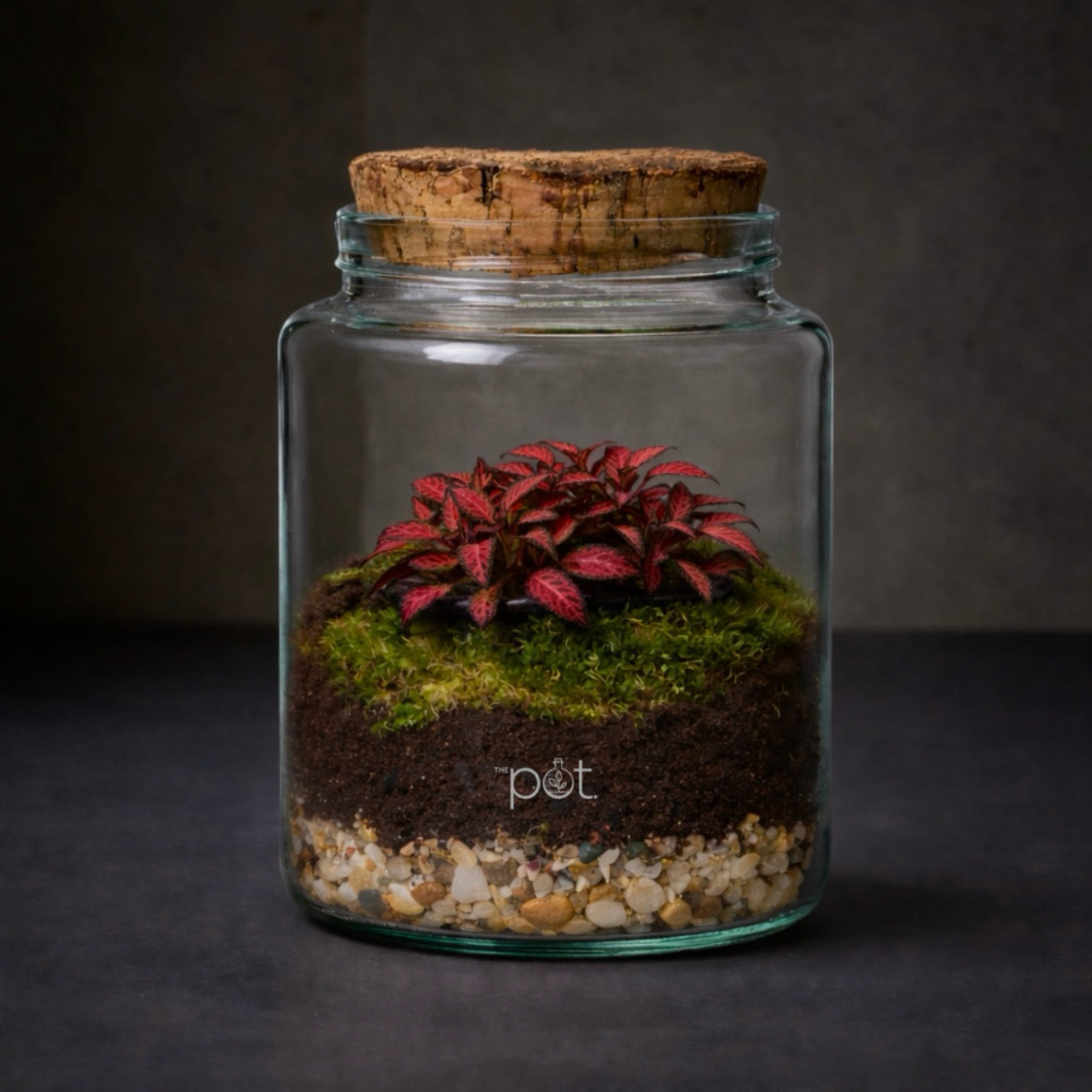 Περιλαμβάνει τροπικά φυτά, moss και φυσικά στοιχεία που δημιουργούν ένα ζωντανό τοπίο σε μικρή κλίμακα.