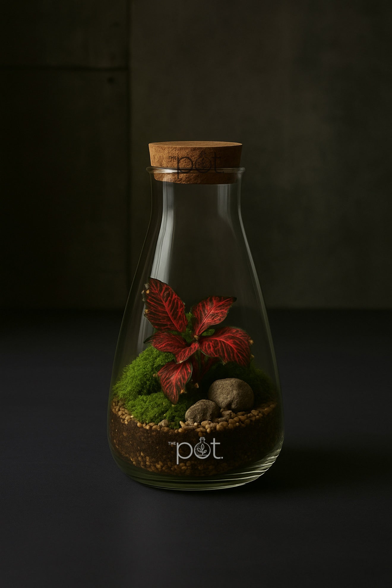 Περιλαμβάνει τροπικά φυτά, moss και φυσικά στοιχεία που δημιουργούν ένα ζωντανό τοπίο σε μικρή κλίμακα.